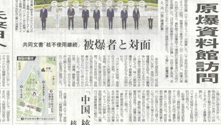 The attendance of Ukrainian President Zelensky at the G7 Hiroshima Summit was conveyed with great surprise. Among many newspapers that featured the story on their front pages, a map outlining the events of the day included the use of EXPERIENCE JAPAN PICTOGRAMS for the Atomic Bomb Dome and the Peace Flame.